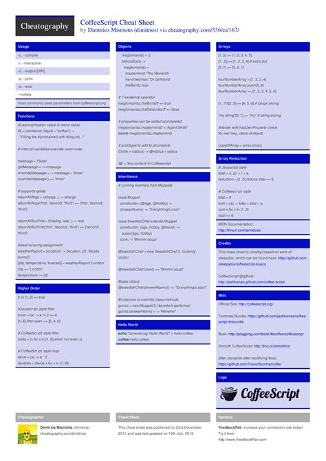 Coffeescript Cheat Sheet Download Printable PDF Templateroller
