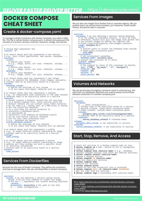 Docker Compose Cheat Sheet. Web cheatsheets are often used in the form of a list or a table, and they typically cover a specific topic or subject area. With more info on command options.
