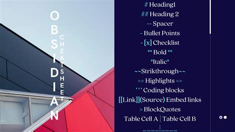 Obsidian Formatting Cheat Sheet. Web obsidian cheat sheet and shortcut keys 🔮. Learn how to add advanced formatting syntax to your notes.