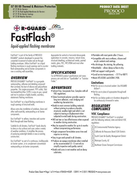 Prosoco Fast Flash Data Sheet. Form viscous paste, mild odor, red color; Voc content 30 g/l maximum;